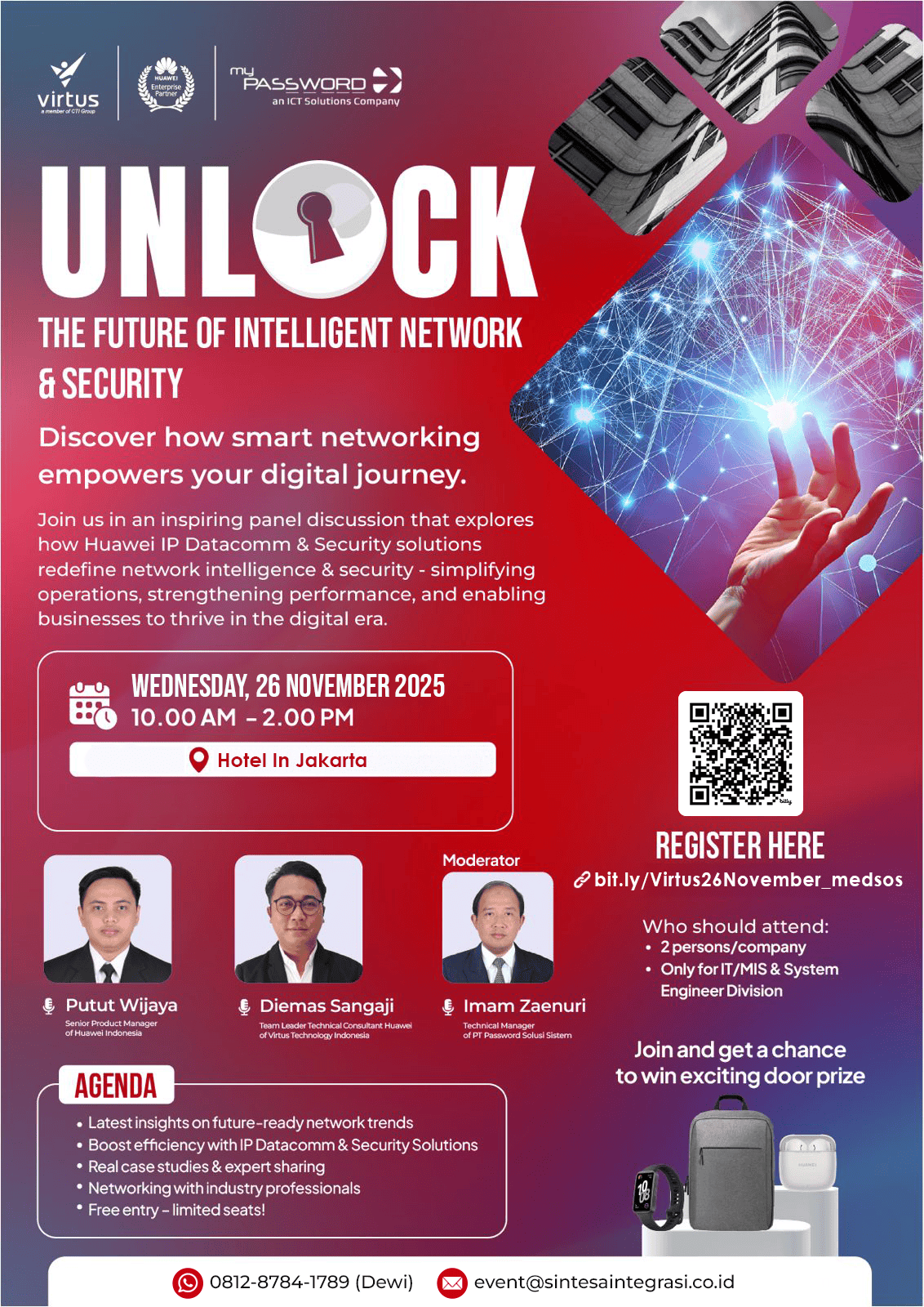 Virtus dan Password Solusi Sistem mengundang Anda untuk membahas mengenai penyederhanaan operasi, memperkuat performa, dan membantu bisnis Anda tetap tangkas di era digital dengan Solusi dari Huawei IP Datacom & Security